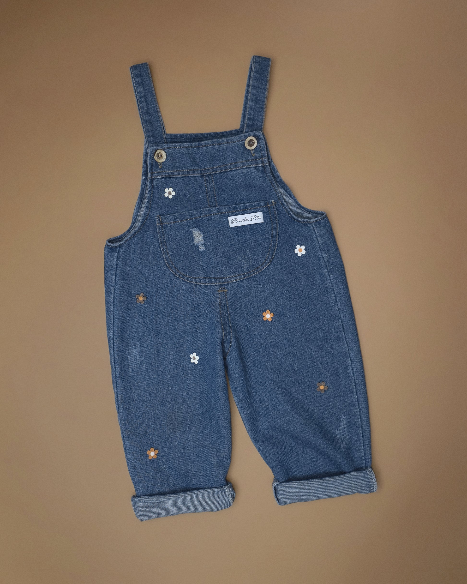 The Clay Flower Dungarees are a sweet twist on our classic design - featuring hand-stitched/embroidered flowers that feels both timeless and playful. Made from soft, breathable denim, they’re designed for all-day comfort with adjustable straps and room to layer. Perfect for flower-picking, mud-stomping, or twirling through the day.